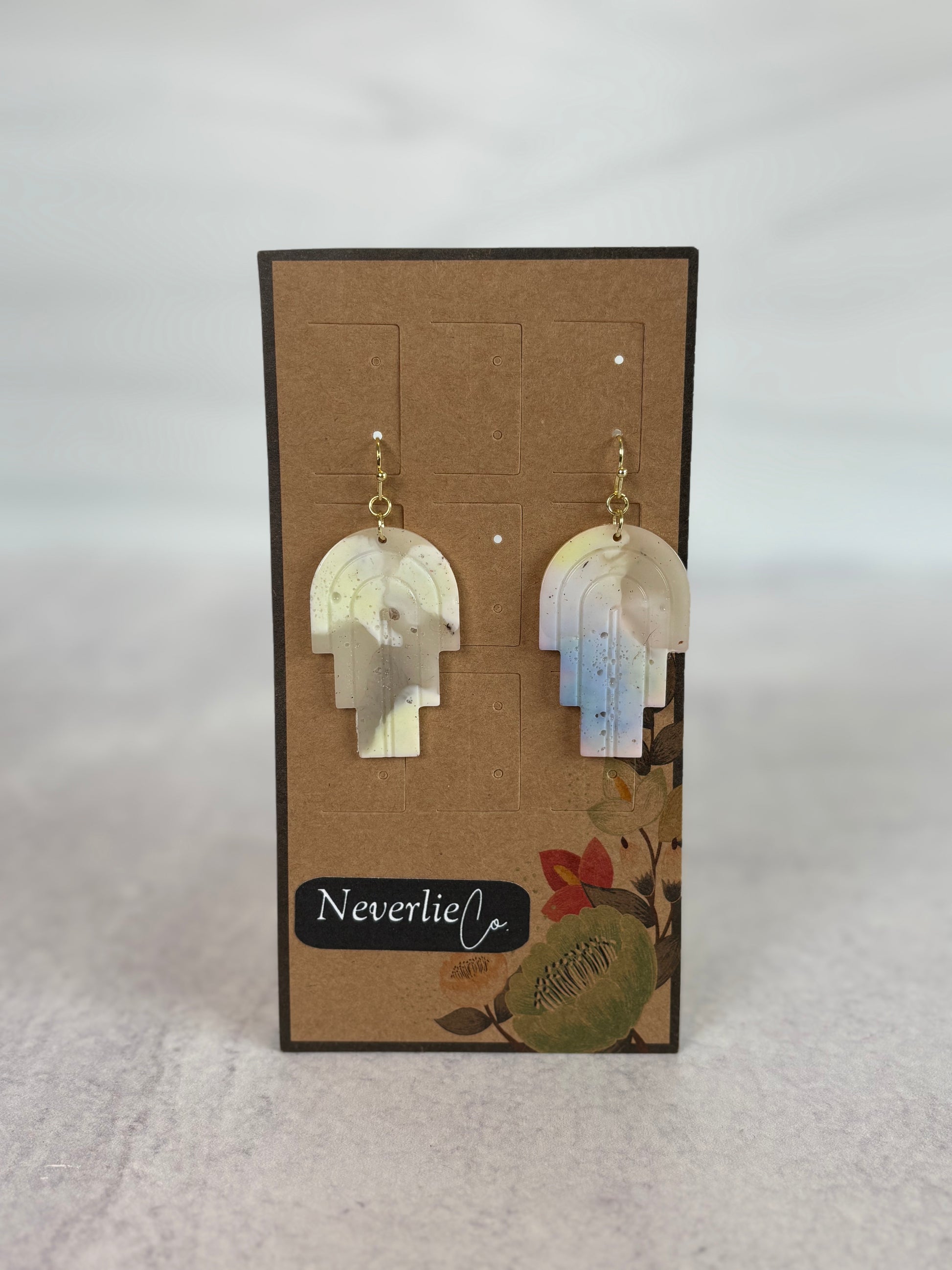 Each pair of Neverlie Co. earrings is one-of-a-kind, crafted from colorful PLA plastic scraps saved from the landfill and melted into bold, modern shapes using silicone molds. Lightweight, vibrant, and eco-conscious, these earrings turn 3D printer waste into wearable art with a story.
